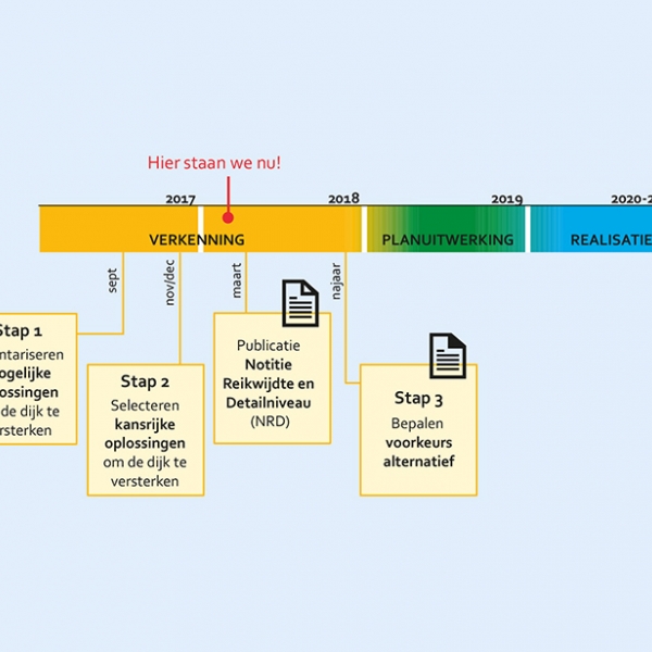 Rond de zomer van 2018 willen wij de keuze voor het voorkeursalternatief klaar hebben. De bestuurders zullen in het najaar een definitief besluit nemen. Wij nemen de bewoners en belanghebbenden mee in de keuze naar het voorkeursalternatief. In het voorjaar organiseren wij daarom bijeenkomsten zodat u ‘over onze schouder kan meekijken’ naar de werkzaamheden. Afhankelijk van de lokale situatie volgen in de periode daarna persoonlijke gesprekken.