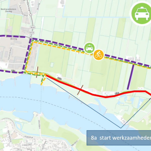 Afsluiting dijkweg tussen Wadensteinsesteeg en de pont naar Brakel