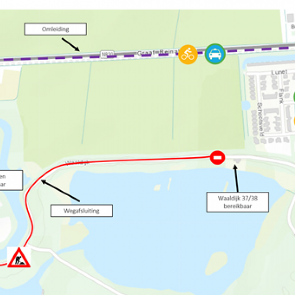 Wegafsluiting Waaldijk ten hoogte van Fort Vuren
