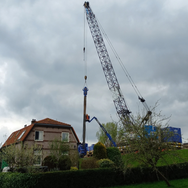 Dit is (in Nederland) een vrij nieuwe techniek om damwanden te plaatsen. Hierbij kunnen we ze trillingsvrij aanbrengen in vrij harde grondlagen.
