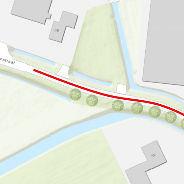 Ter hoogte van huisnummer 38 en 39 verwijderen we een oude duiker en plaatsen een nieuwe. De weg moet hiervoor worden opengebroken.